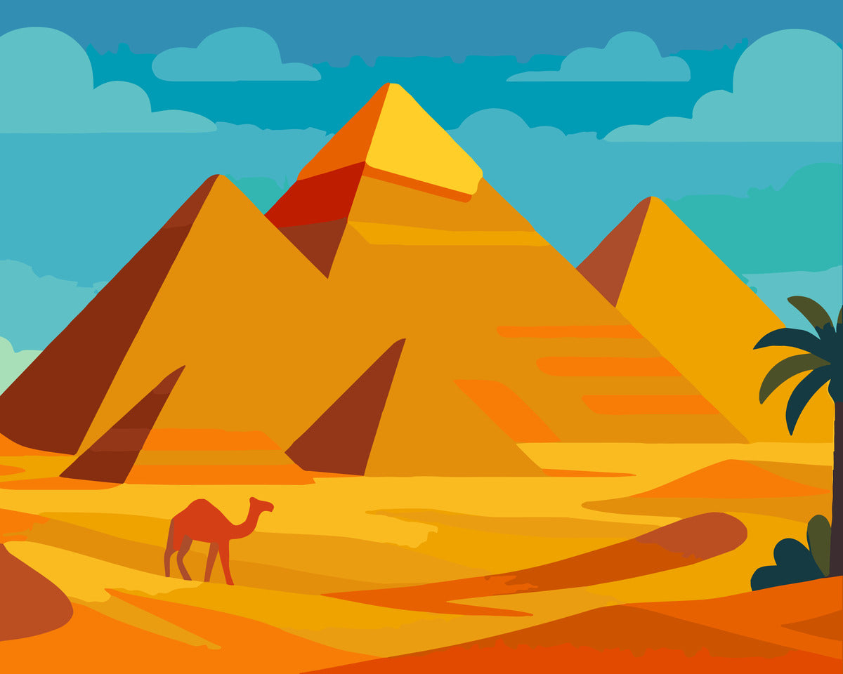 Bring the iconic Pyramids of Giza to life with this 40x50cm paint-by-numbers kit.