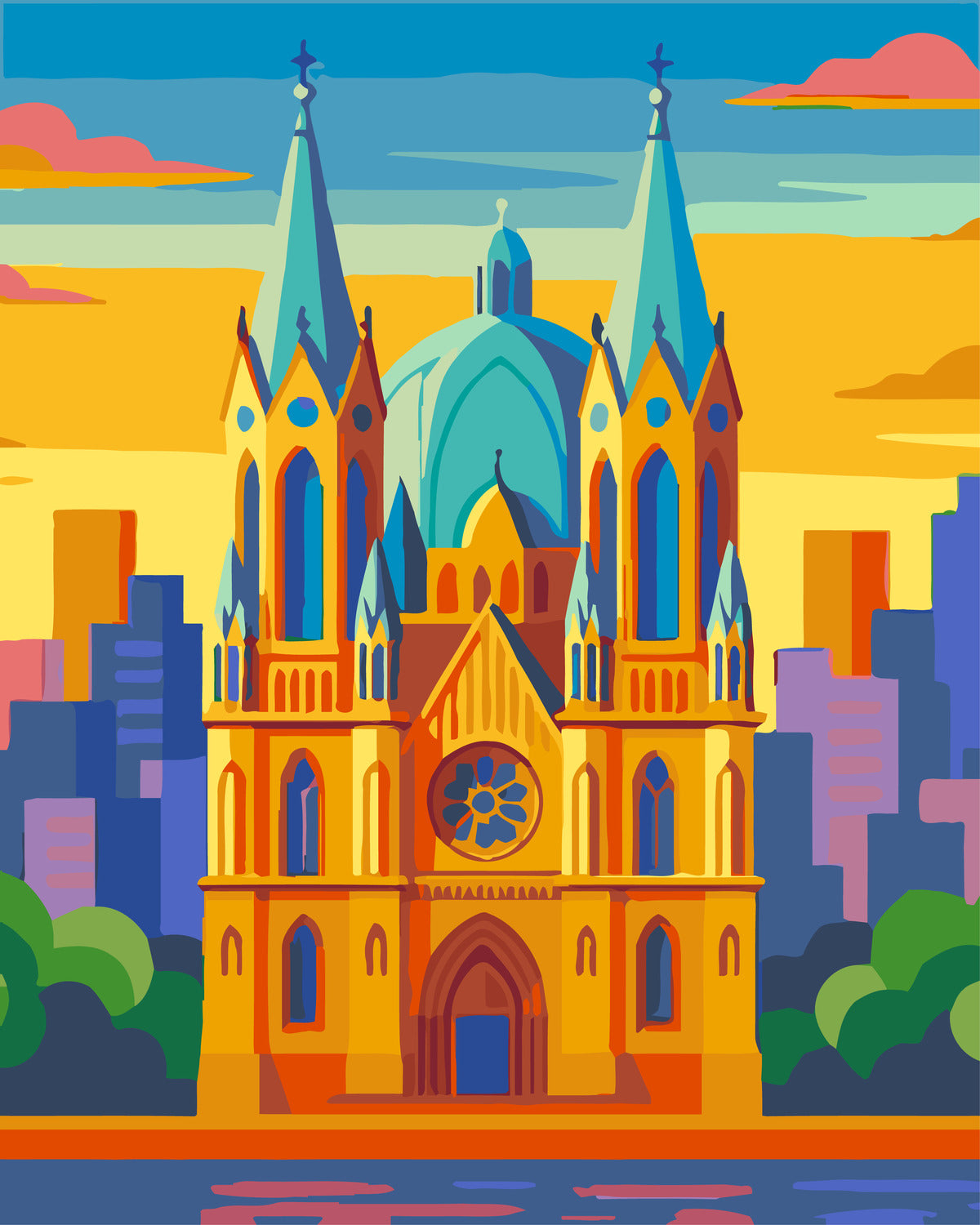 Bring the iconic Sao Paolo Cathedral to life with this 40x50cm paint-by-numbers kit.